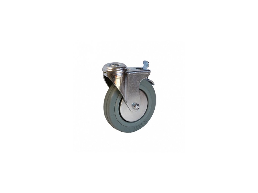Otočné pojazdové koleso s brzdou d125/80kg, šedý kaučuk, klzné ložisko, s dierou pre čap