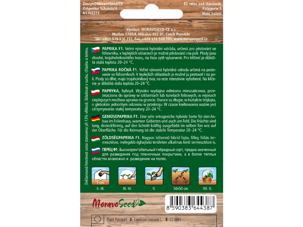 Plody sú dlhé, trojuholníkovitého tvaru, na reze sýto vyfarbené. Na klíčenie je dôležitá stála teplota 20-24 °C.