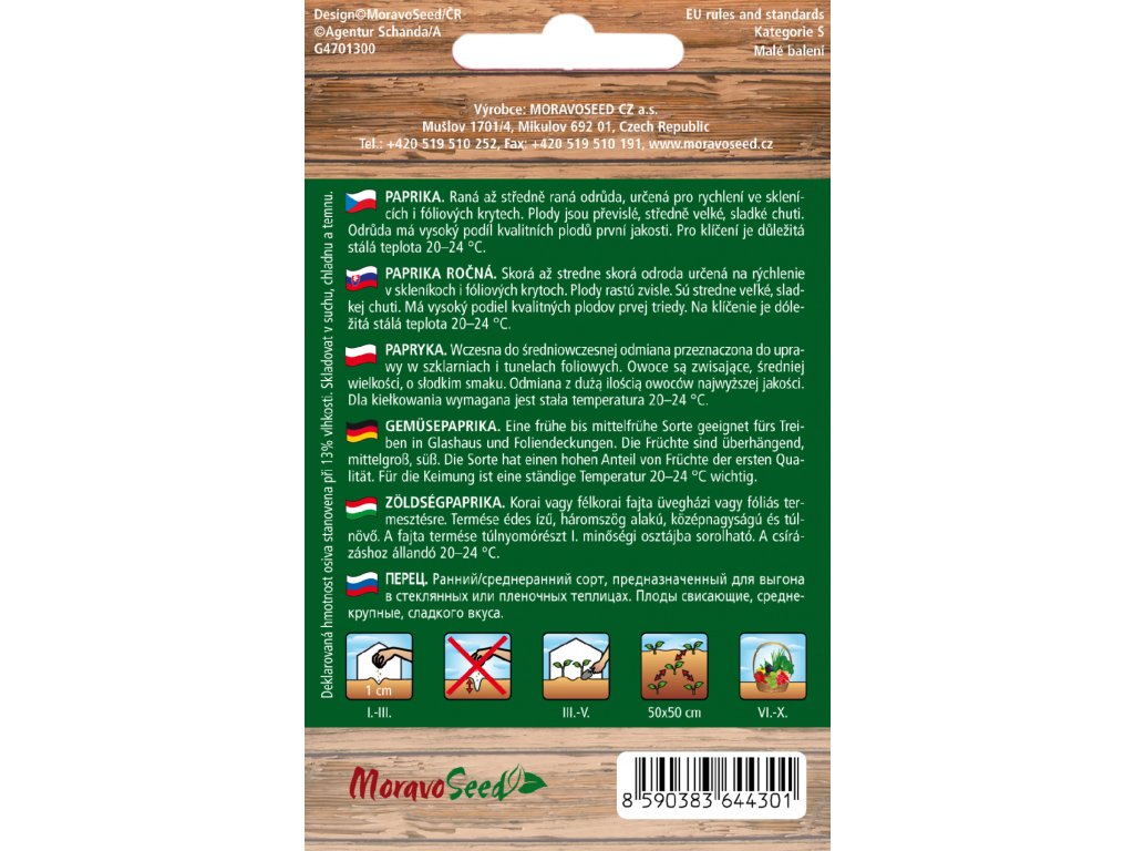 Plody sú previsnuté, stredne veľké, sladké chuti. Odroda má vysoký podiel kvalitných plodov prvej akosti. Na klíčenie je dôležitá stála teplota 20-24 °C.