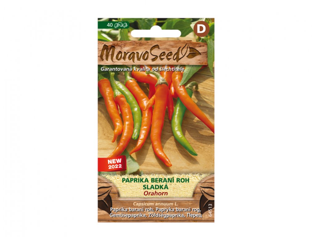 Poloraná výnosná odroda sladkej papriky typu barania roh so stredne zelenými plodmi dozrievajúcimi do jasne oranžovej farby s vysokým leskom.