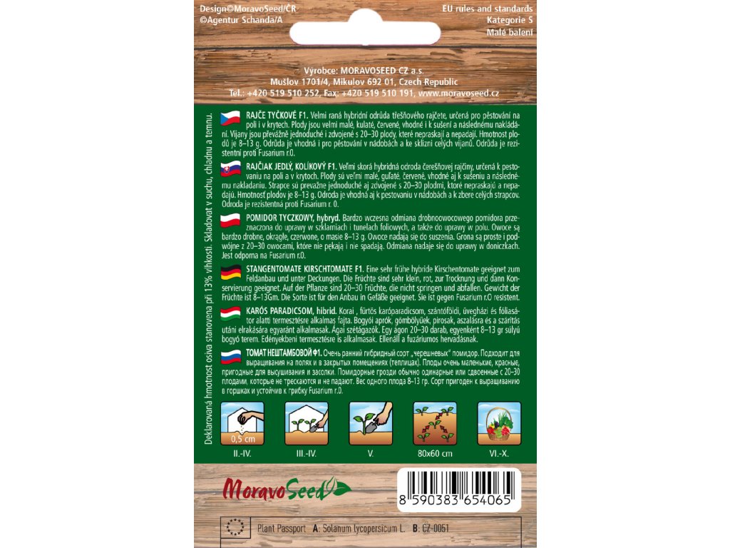 Plody sú veľmi malé, okrúhle, červené, vhodné aj na sušenie a následné nakladanie. Vijany sú prevažne jednoduché aj zdvojené s 20-30 plodmi, ktoré nepraskajú a nepadajú. Hmotnosť plodov je 8-13 g. Odroda je vhodná aj na pestovanie v nádobách a na zber celých vijanov. Odroda je rezistentná proti Fusarium r.0.