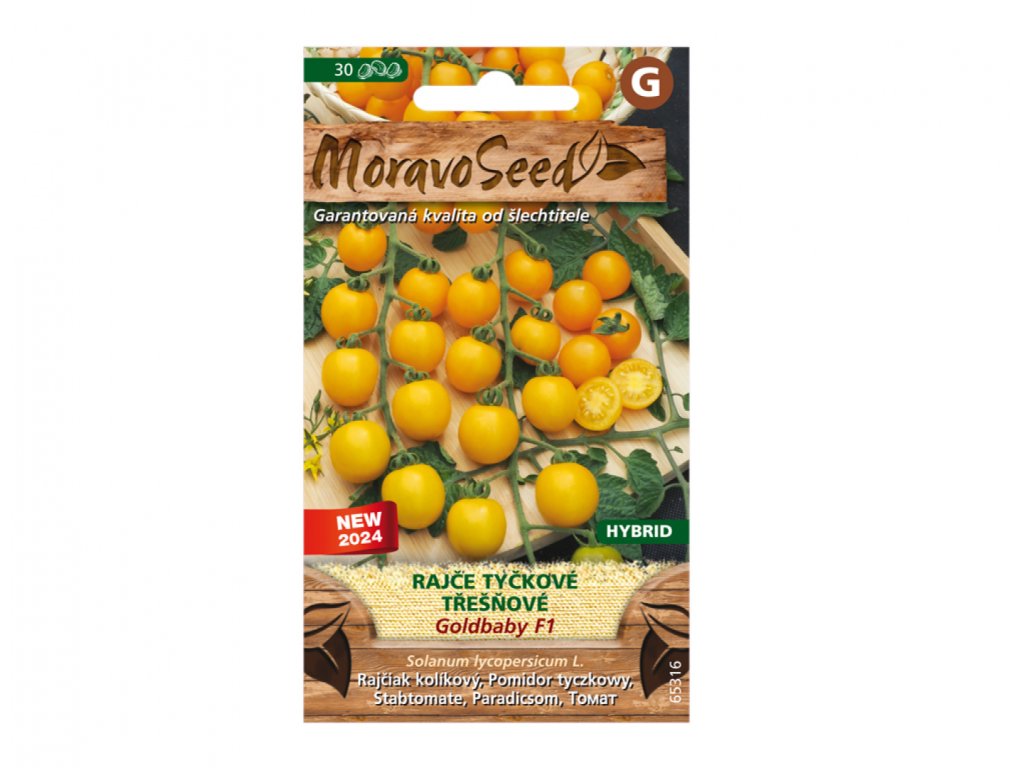 Veľmi skorý hybrid tyčkového čerešňového paradajky so žltými plodmi s hmotnosťou 17-23 g, určený na studené rýchlenie a poľné pestovanie.