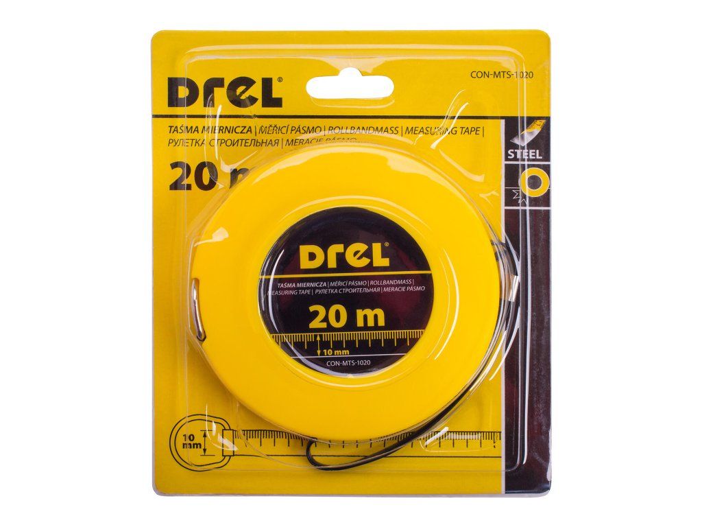 dĺžka pásma: 20 mšírka pásma: 10 mm Oceľové zvinovacie pásmo 20 m/10 mm Drel v odolnom tvrdenom puzdre so sklopnou navíjacou páskou.Dodatočné parametre