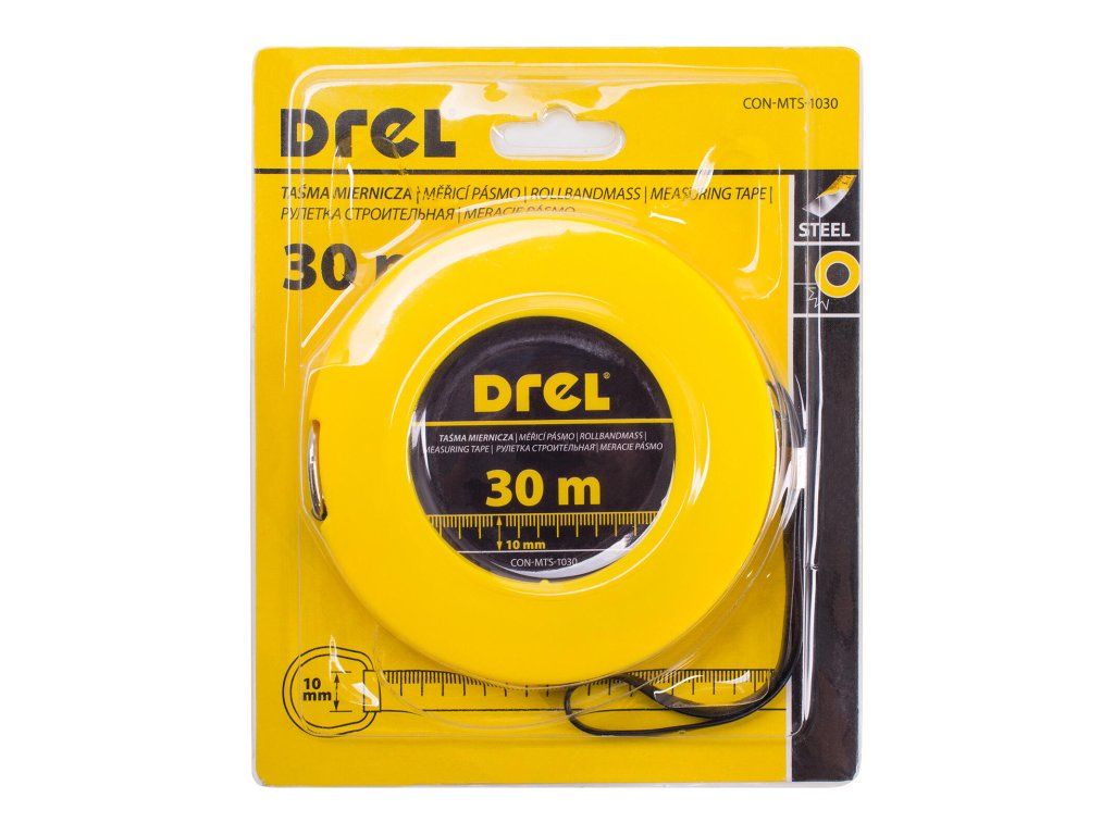 dĺžka pásma: 30 mšírka pásma: 10 mm Oceľové zvinovacie pásmo 30 m/10 mm Drel v odolnom tvrdenom puzdre so sklopnou navíjacou páskou.Dodatočné parametre
