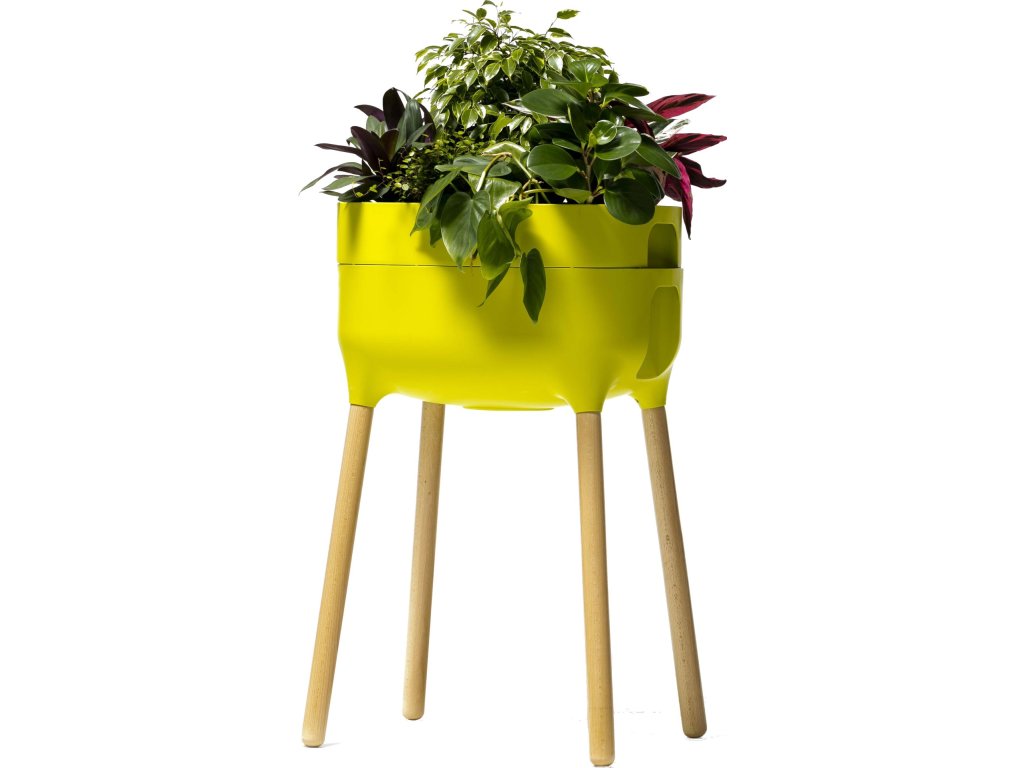 Samozavlažovacia interiérová nádoba URBALIVE uľahčí starostlivosť o rastliny vo vašom dome; v kombinácii plastu a dreva.