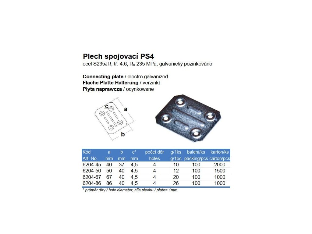 Plech spojovací PS4