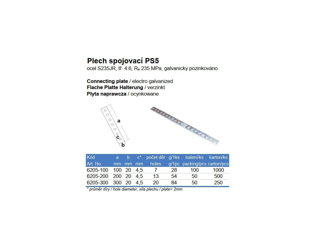 Plech spojovací PS5