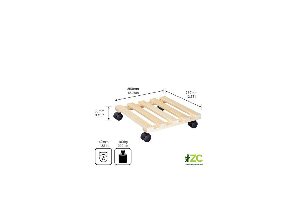 Táto podložka pod kvetináč je vyrobená z kvalitného borovicového dreva štvorcového tvaru. Vďaka otočným kolieskam uľahčuje manipuláciu s kvetináčom s nosnosťou do 100 kg.