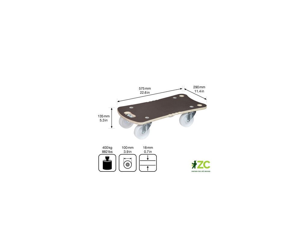 Transportná podložka na premiestňovanie veľmi ťažkých predmetov, vhodná aj na sťahovanie nábytku, alebo presun ťažkých kvetináčov. plocha protišmyková a vodoodpudivá. Štyri kolieska zaistia najlepšiu ovládateľnosť na všetkých podlahách. Dve ergonomické zapustené madlá a praktická rukoväť umožňujú pohodlnú prepravu na miesto použitia a umožňujú ju zavesiť pre úsporu miesta. Nosnosť & 400 kg. 0cm">drevo (kolieska z vysoko kvalitného plastu)