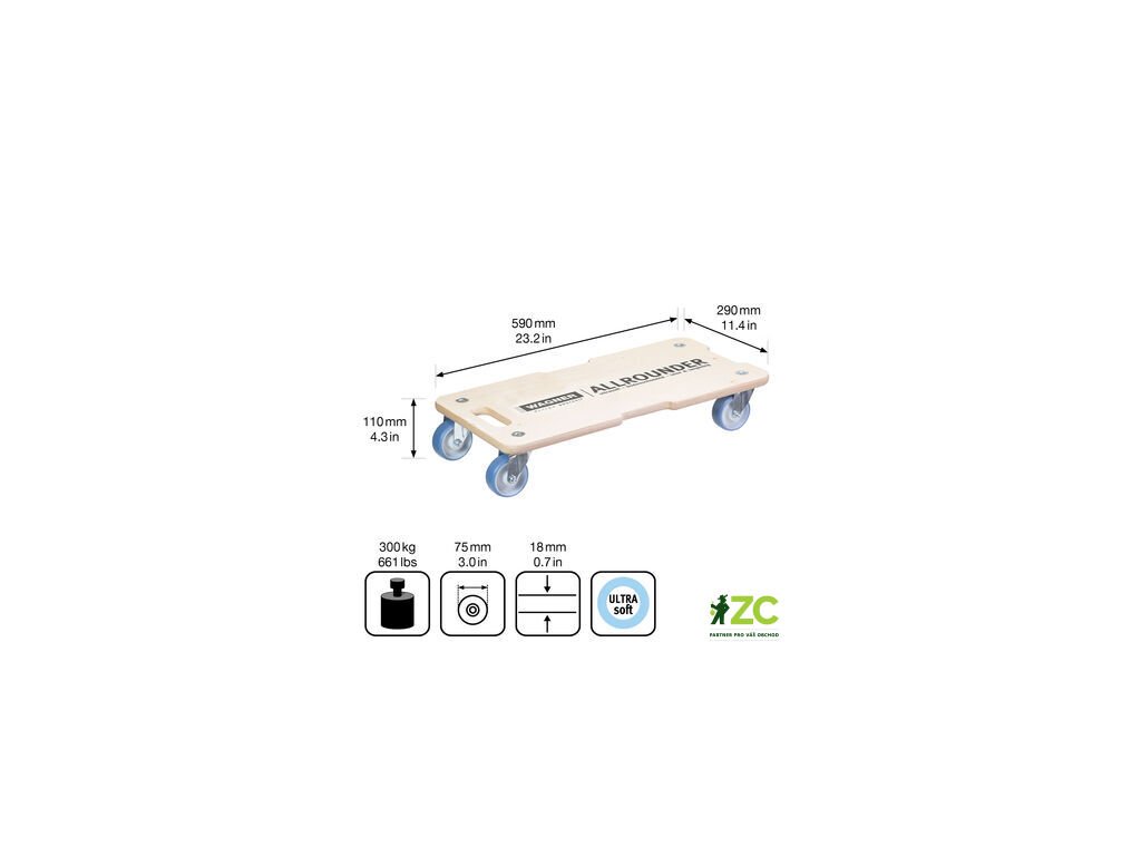 Táto transportná podložka je ideálna pre jednoduché a pohodlné premiestňovanie ťažkých bremien - v kancelárii, v dielni, doma, pri nákupe aj pri sťahovaní. Štyri hladko sa otáčajúce ultra mäkké kolieska transportného zariadenia zaisťujú skvelú ovládateľnosť šetrnú k podlahe, bez škrabancov a šmúh na všetkých podlahách (aj pre mäkké povrchy). Ďalšie výhody: