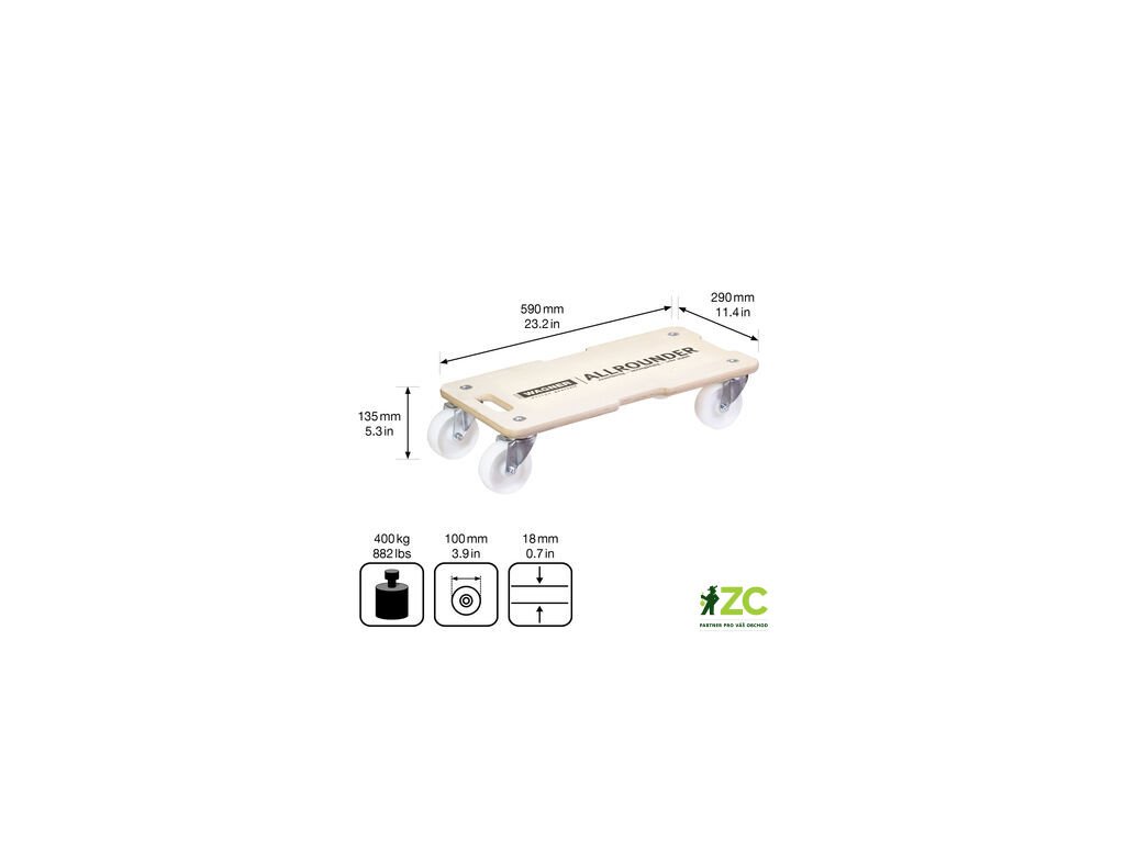 Táto transportná podložka je ideálna pre jednoduché a pohodlné premiestňovanie veľmi ťažkých nákladov - v kancelárii, v dielni, doma, na nákupoch aj pri sťahovaní. Štyri otočné kolieska zaisťujú skvelú ovládateľnosť na všetkých podlahách (aj pre mäkké povrchy).