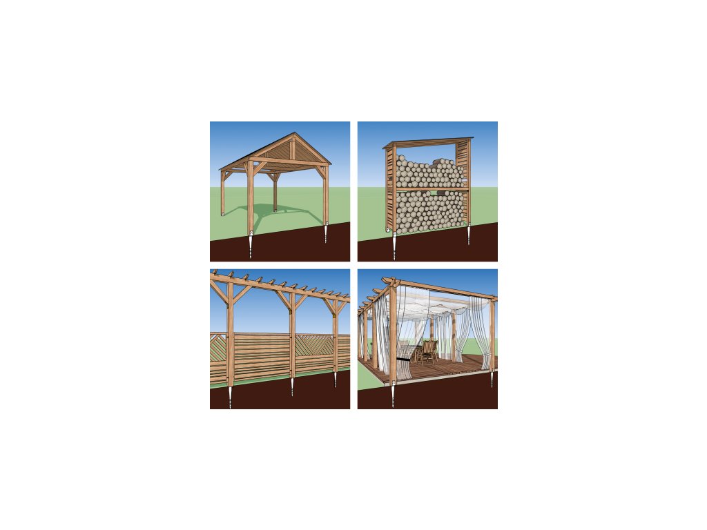 Zemné skrutky sú vhodné nielen na zakladanie drobných stavieb, ako sú ploty, dopravné značky, pergoly, detské zostavy, záhradné domčeky, ale aj väčších stavieb – napr. drevostavby, montované domy, vlajkové stožiare, solárne elektrárne alebo montované haly atď.