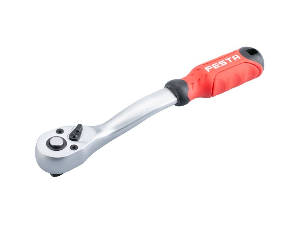 profesionání ráčna z chromvanadiové oceli pro hlavice 3/8" vyhnutý tvare těla pro snadněší práci bez úrazu ráčnový mechnismus z kalené Cr-Mo oceli 45 zubů se záběrem po 10-ti obloukových stupních s přepínáním směru pohybu ráčny - utahování / povolování ergonomická pogumovaná rukojeť - neklouzavá a odolnáDodatočné parametre