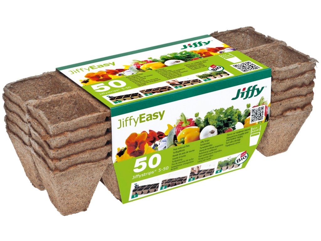 Rašelinový kontajner Jiffystrips® 5-50, 4,5x4,5 cm - plato 10ks, 5 plat v balení