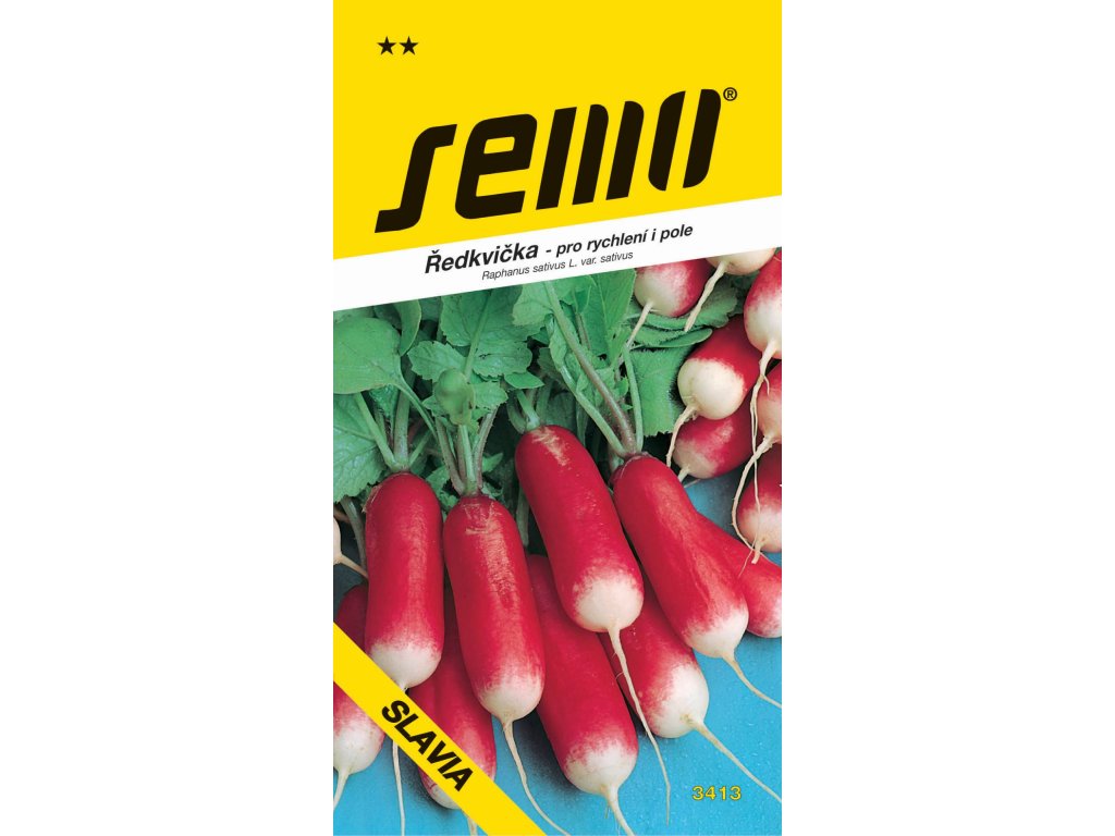 SLAV červenobiela, podlhovastá buľvička do troch štvrtín červená, spodná časť je biela typu Parisian Breakfast. Veľmi skorá odroda vhodná na výsev už od konca februára na rýchlenie. Do voľnej pôdy sa vysieva v marci a apríli. Zberá sa od marca do mája. Je vhodná aj na neskoré pestovanie. Vegetačná doba od výsevu do zberu je 32 – 35 dní, odporúčaný pestovateľský spon na rýchlenie je 15 x 3 cm.