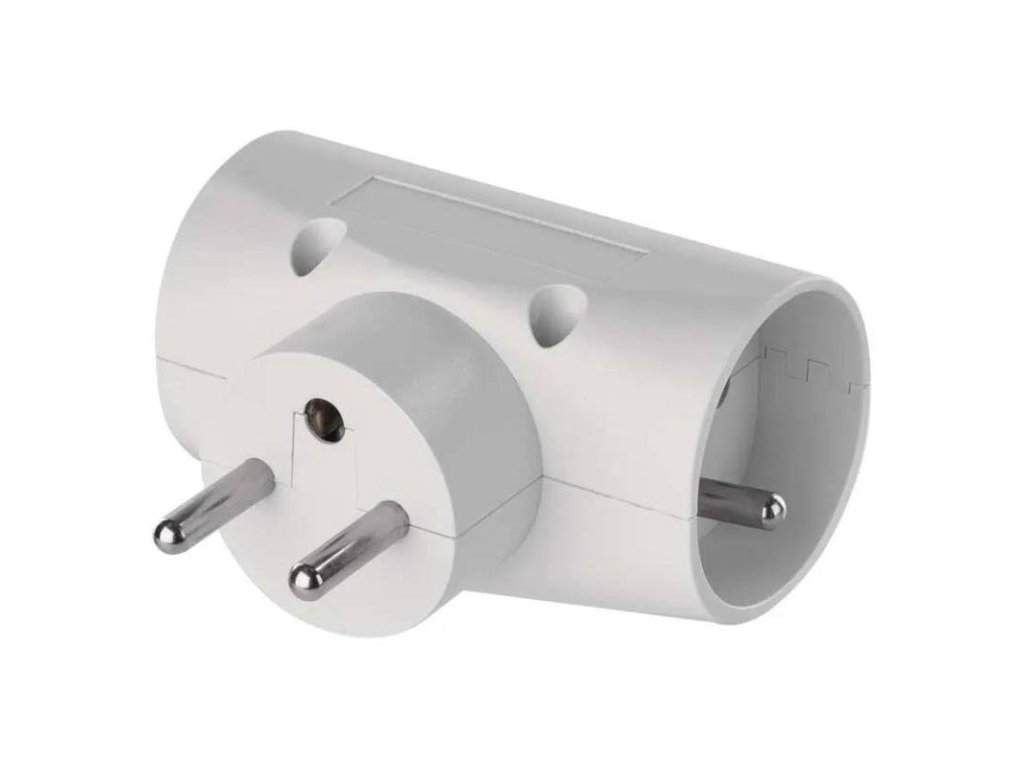 Rozbočovacia zásuvka 2× guľatá + 1× plochá, biela/ 250V