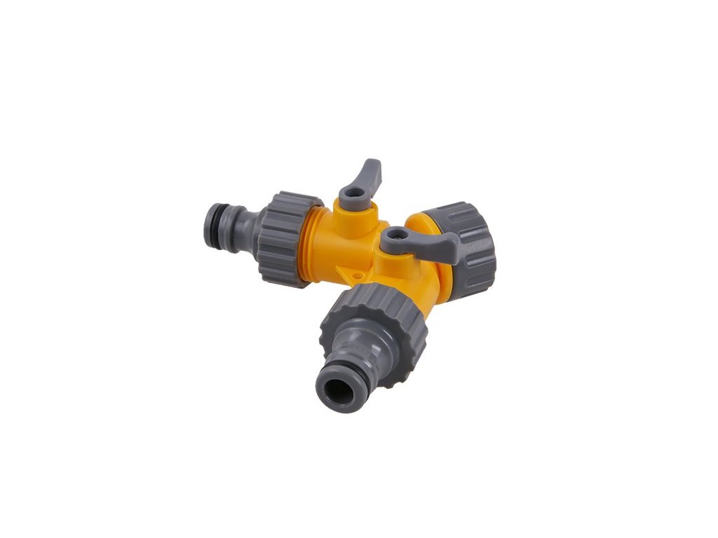 rozdvojka s 2 ventilmi pre 2 rýchlospojky vstup 3/4" vnútorný závit, výstupy - 2 x koncovka na pripojenie rýchlospojky alebo vonkajší závit 3/4" ventily pre smaostatné uzatváranie jednotlivých výstupov maximálny tlak 690 kPaDodatočné parametre