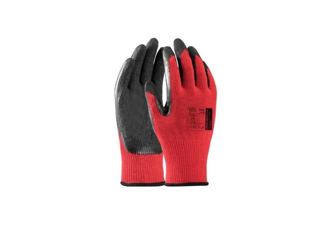 - Červené polyesterové rukavice s latexovou vrstvou na dlaniach a prstoch využijete pri práci s chemikáliami i ďalšími kvapalinami. Hodí sa, ale aj pre manipuláciu s hladkými predmetmi, pretože latexová vrstva výborne zamedzuje akémukoľvek prešmykovaniu. Rukavice majú zvýšenú odolnosť proti oderu a vysokú odolnosť proti trhaniu. Pružná bezšvová manžeta drží rukavice na správnom mieste a zároveň neškrtí ani nespôsobuje otlaky.