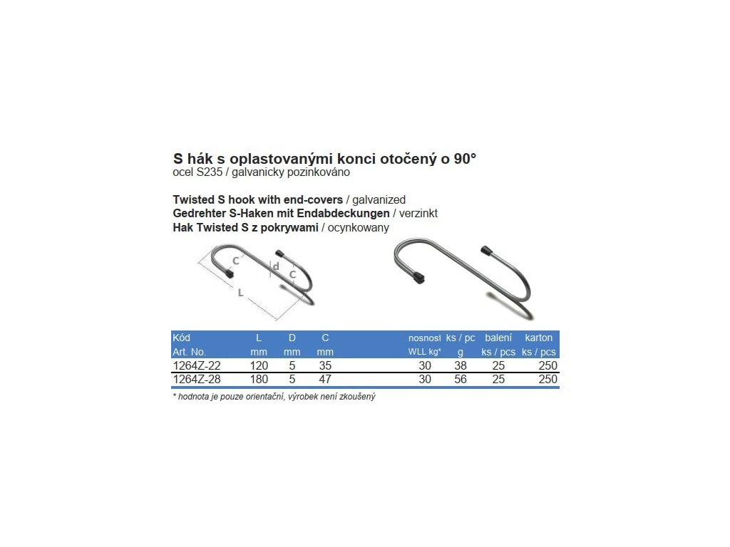 S hák s oplastovanými koncami, otočený o 90°