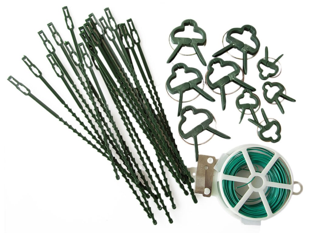 Súprava na viazanie rastlín. - udoláva poveternostným vplyvom - slúži na fixáciu väčších ale aj menších rastlín pre rovný rast - jednoduchá manipulácia s klipmi a viazacími páskami - viazací drôt v praktickom zásobníku, ktorý možno ľahko odvíjať a odstrihávať na potrebnú dĺžku sada obsahuje: - 25 ks veľký klip - 23 ks malý 1 ks uväzovací drôtik, dĺžka 30 mDodatočné parametre