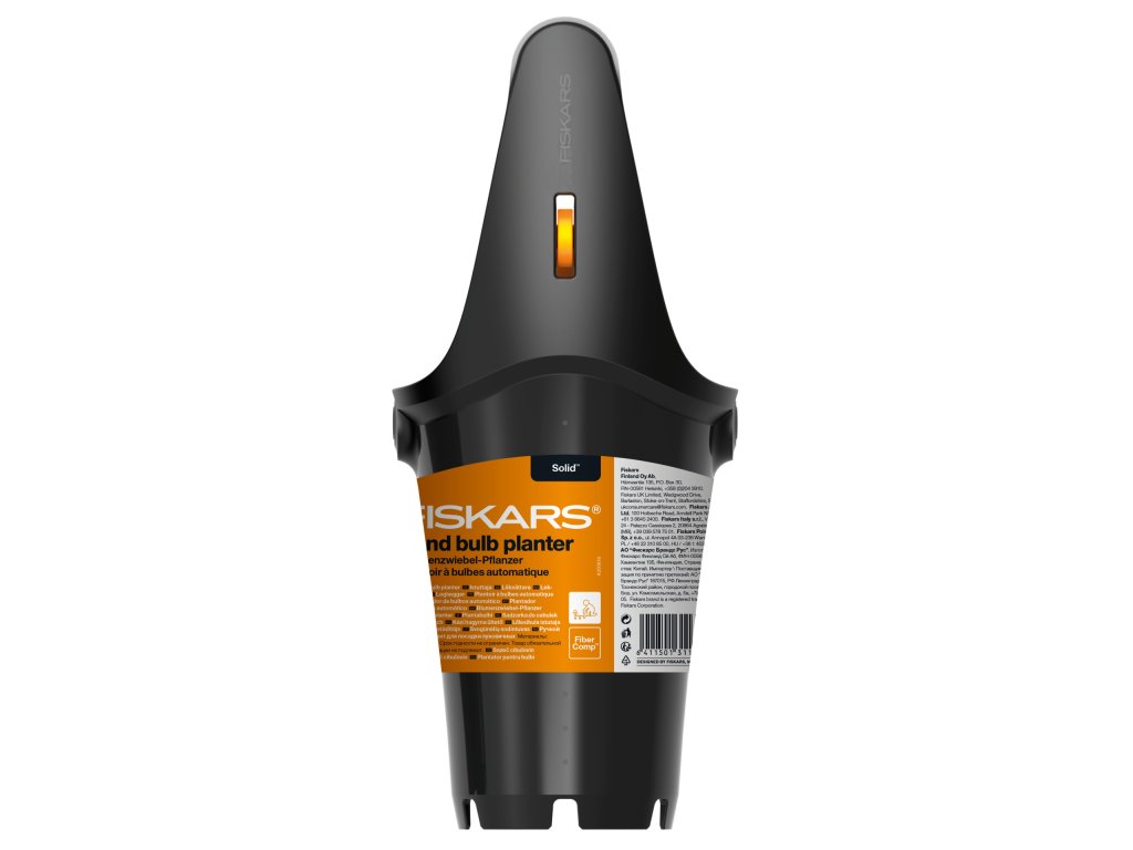 Ručný sadzač cibuľovín Fiskars Solid je ideálny pre rýchle a presné sadenie cibuľovín a iných sadeníc. Kužeľová pracovná časť je opatrená zubami pre rýchle a efektívne vyhĺbenie otvoru v pôde otáčavým pohybom. Sadzač má na boku meraciu stupnicu na presnú kontrolu hĺbky. Jednoduchá uvoľňovacia páka otvára sadzač a uvoľňuje zeminu na zasypanie cibuľky v otvore. Vhodný pre cibuľky do veľkosti 65 mm, hĺbka výsadby až do 125 mm. Vyrobené z odolného materiálu FiberComp odolného voči poveternostným vplyvom, ľahké čistenie. 0,25kg