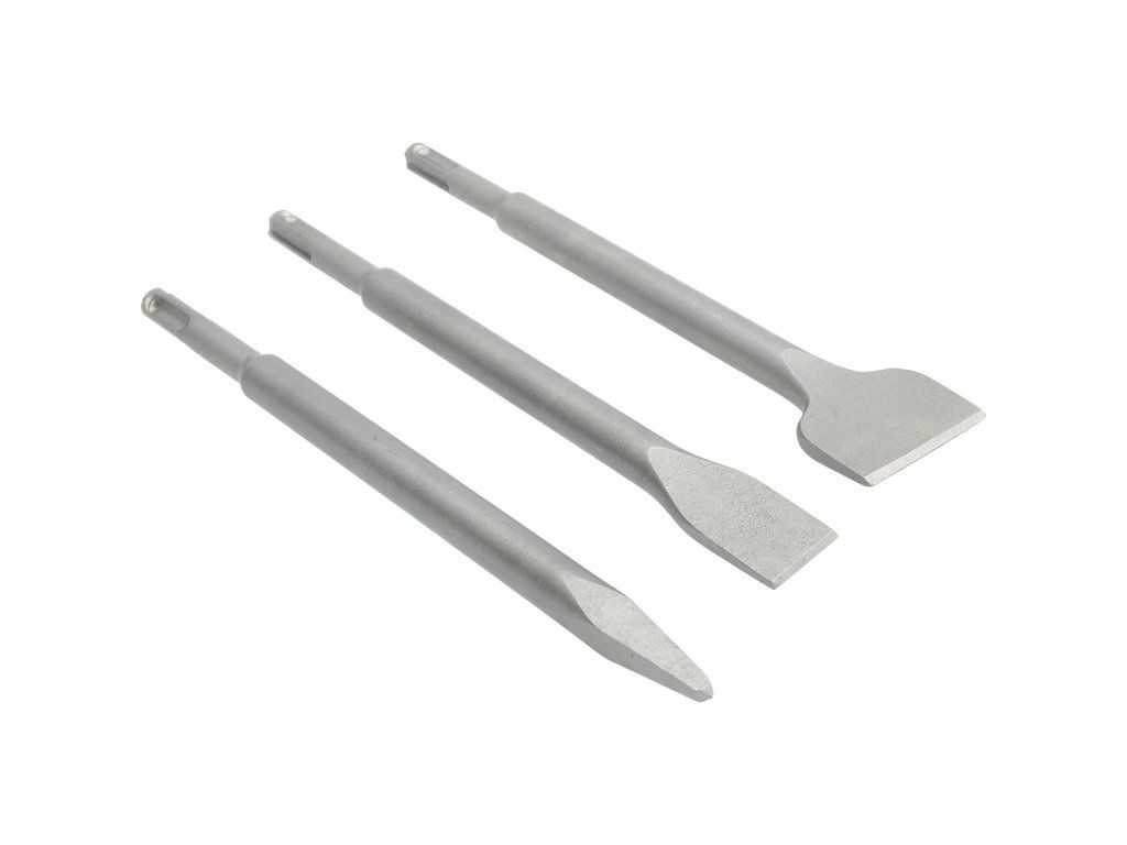 Kombinácia troch sekáčov na sekanie, búranie, drážkovanie, rozbíjanie muriva, betónu, obkladov, dlažieb, kameňa... Sada plochých sekáčov 20/40 x 250 mm, špicatý sekáč 14 x 250 mm, upínanie SDS-plus, 3 ks.Dodatočné parametre