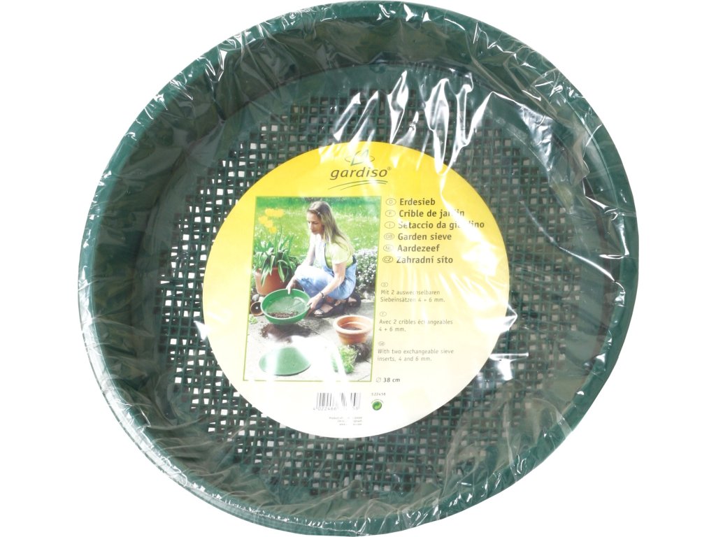 Popis:Záhradné sito slúži na osievanie - príprave záhradnej zeminy pred výsadbou. Sito dodávame ako sadu obsahujúcu dve vymeniteľné sitá s otvormi 4 x 4 a 6 x 6 mm. Materiál: tvrdený plast Farba: zelená Zelená priemery: cm