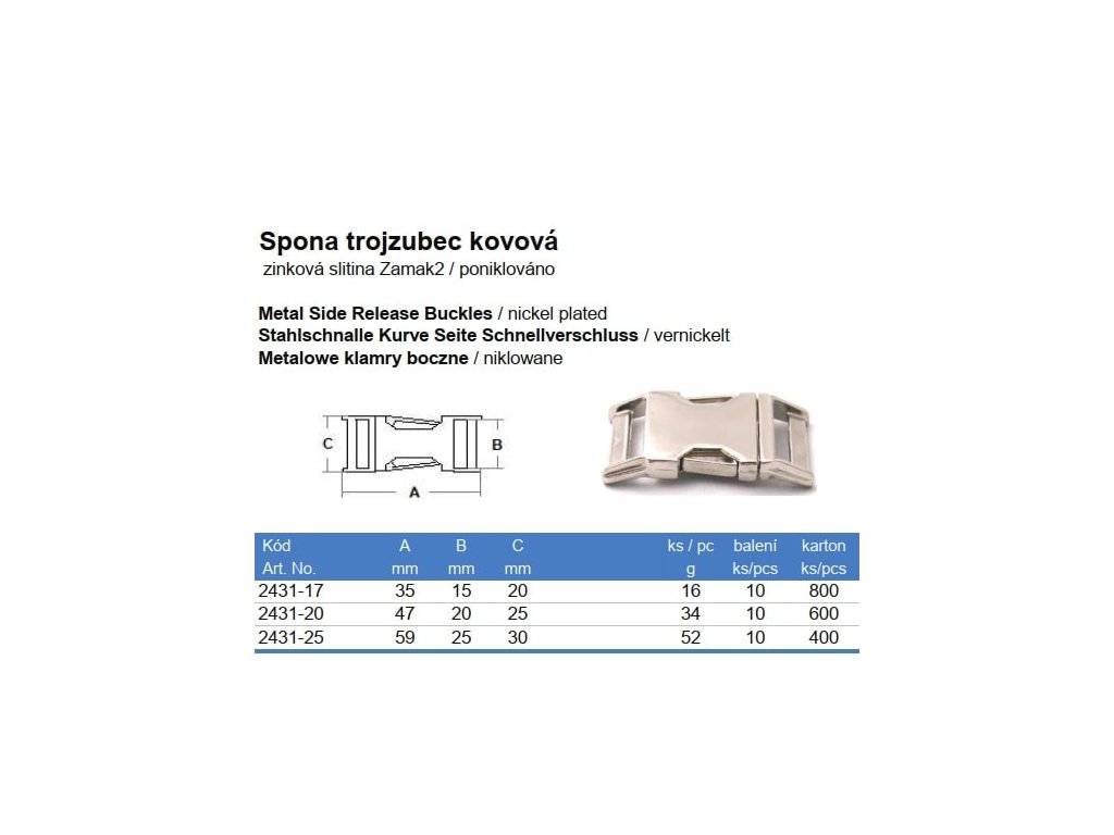 Spona trojzubec kovová