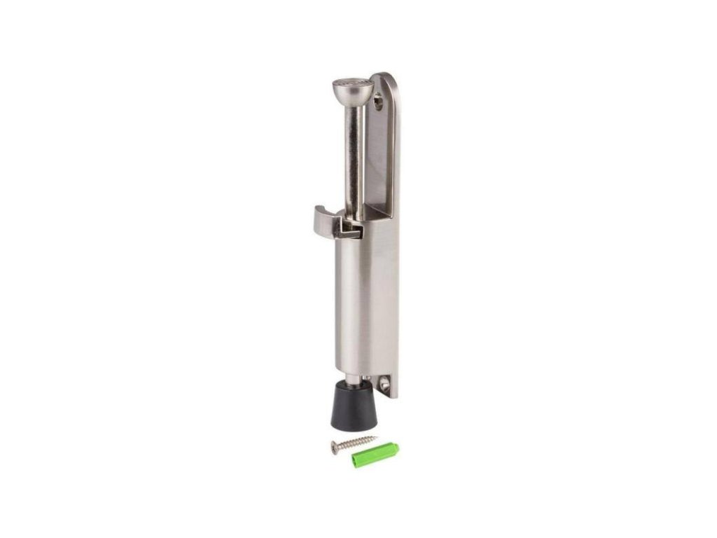Stavač dverí v povrchovej úprave matný nikel.- Nožná brzda s gumovým tŕňom umožňuje fixovať dvere v ľubovoľnej polohe