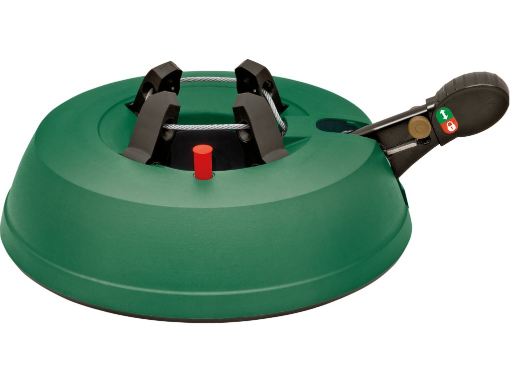 Zelený plastový stojan na vianočný stromček. Uchytenie do čeľustí ovládaných nožnou pákou a lankom. Je to ideálne riešenie pre každý typ vianočného stromčeka s maximálnou výškou 1,8 metra a maximálnym priemerom kmeňa 9 cm. Stojan obsahuje nádobku na vodu a tým zaručí dlhšiu zeleň stromu.