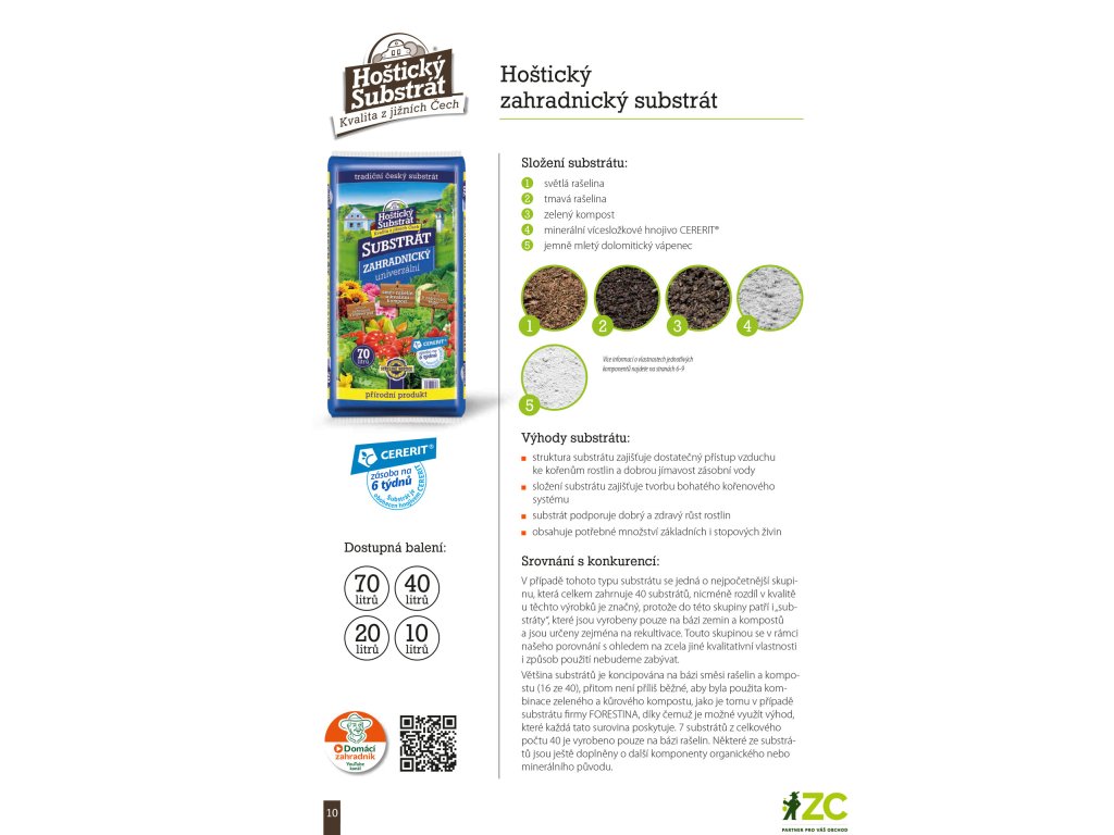 Hoštický záhradnícky substrát je vyrobený zo zmesi svetlej a tmavej rašeliny, kvalitného vytriedeného kompostu a obsahuje minerálne viaczložkové hnojivo CERERIT.