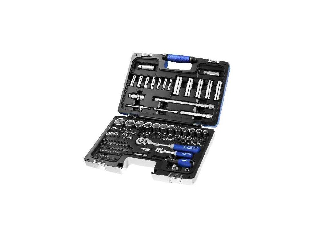 sada obsahuje 98 dielov: orech 1/4“: 4;4,5;5;5,5;6;7;8;9;10;11;12;13;14 mm orech 1/2": 8;9;10;11;12;13;14;15;16;17;18;19;20;21;22;23;24;25;26;27;28;30;32;34 mm nadstavec predlžovací 1/4": 75;150 mm nadstavec2 0mm račňa 1/4", 150 mm, 45 zubov, s prepínacou páčkou, bi-plastová rukoväť račňa 1/2", 262 mm, 54 zubov, s prepínacou páčkou, bi-plastová rukoväť skrutkovač na nástrčné hlavice orechy 1/4" 1/4" kardan univerzálny 1/2" vratidlo 1/2", 300 mm adaptér - orech 1/4" / BIT1/4" BIT 1/4" plochý: 4; 5,5; 7 mm BIT 1/4" PHILLIPS: PH1; TONA EXPERT v profesionálnom kufríku, ktorý umožňuje ľahké uloženie a prenášanie náradia.Dodatočné parametre