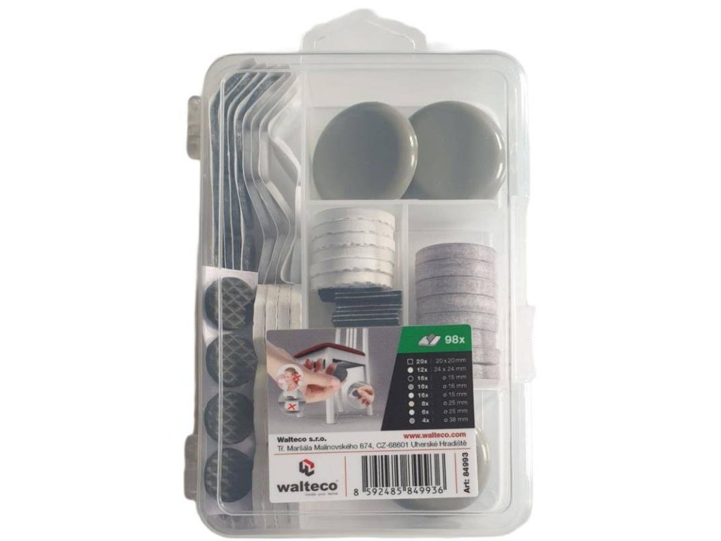 - Filcové podložky: 20x20 mm čierna - 20x, O 15 mm šedá - 16 ks, O 15 mm biela - 16 ks, O 25 mm béžová - 8 ks