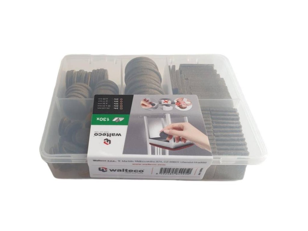 - Filcové podložky: 24x24 mm - 24x, 35x24 mm - 22x, O 34 mm - 30x, O 25 mm - 24x, O 17 mm - 30x