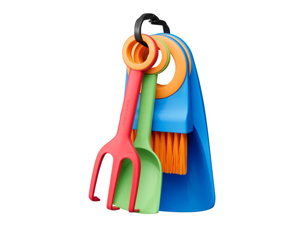- Sada náradia Fiskars MyFirstFiskars Cultivating obsahuje štyri kvalitné a ľahké nástroje, ktoré sú veľkostne vhodné pre detské ruky.