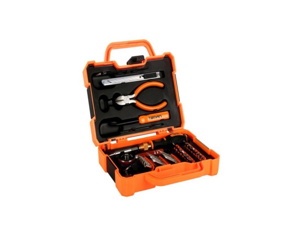 - Sada ručného náradia pre precíznu prácu, 47ks. Náradie vhodné na opravy všetkej drobnej elektroniky počítačov, telefónov, hodinárstva a ďalšiu jemnú mechaniku. Základ sady tvorí skrutkovač s protišmykovým povrchom, magnetický predlžovací nadstavec, pinzeta, račňa, kliešte, rezný nôž, škrabka, prísavka a rôzne typy bitov rôznych štandardov a rozmerov (Torx, Hex, plochý a mnoho ďalších). Súprava je uložená v praktickom plastovom uzamykateľnom púzdre a ocenia ju ako domáci majster, tak aj skutočný profesionál. PH4,0 5,0 6,0; HEX3,0 4,0 5,0; U6.0; TORX T6 T7 T8; TRI-WING Y2 Y3; pozícia PZ2 PZ3