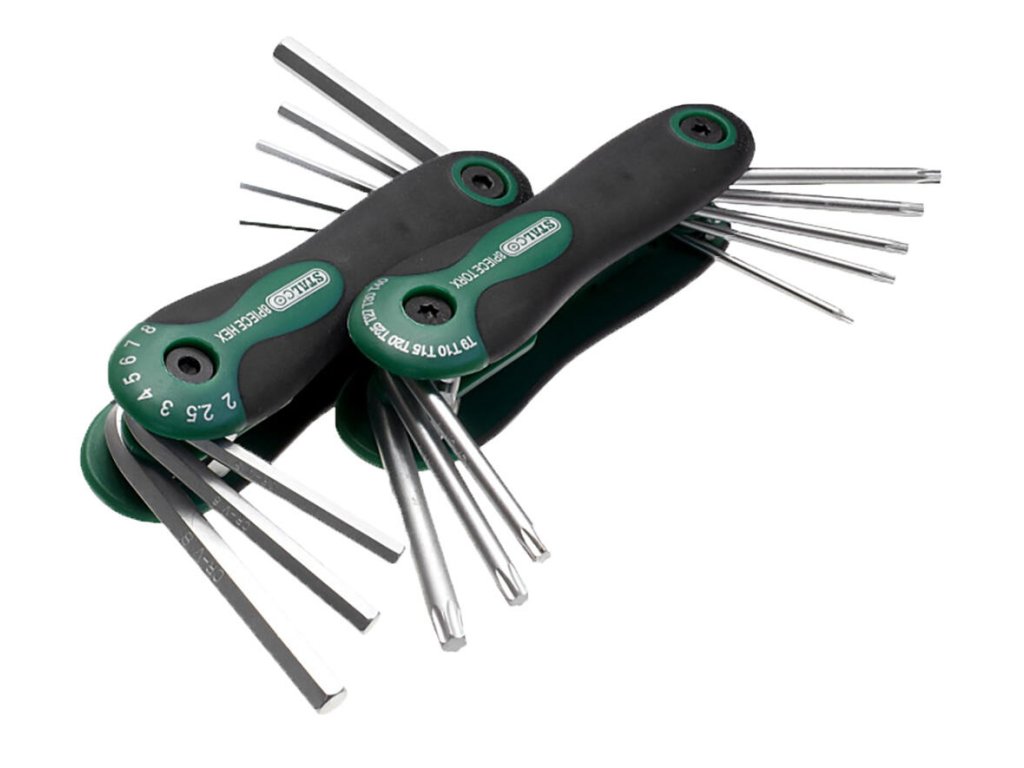 Súprava kľúčov Torx a imbusových kľúčov Torx: T9 - T40 ; Hex: 2-8 mm; 2 x 8-dielna sada. sada obsahuje: kľúče Torx: T9; T10; T15; T20; T25; T27; T30; T40 kľúče Hex: 2; 2,5; 3; 4; 5; 6; 8 mm Vyrobené z chróm vanádiovej ocele.Dodatočné parametre
