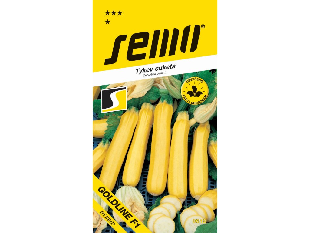 GOLDLINE F1 Hybridná cuketa. Chuťovo vynikajúce, sladkasté, kompaktné, s vyšším obsahom beta karoténu. Mladé listy pri nízkych teplotách majú výraznú žltú kresbu, ktorá je odrodovým znakom a neprejaví sa na znížení výnosu. Listy v neskoršom štádiu sú tmavozelené. Vegetačná doba do prvého zberu je 60 - 65 dní. Spon 120 - 150 x 80 cm.