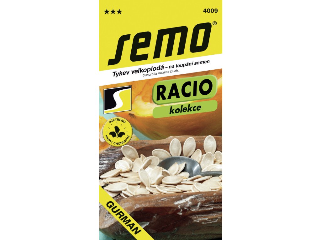 Odroda: štýle="MARGIN: 0cm 0cm 0pt">GURMAN - kolekcia RACIO – špeciálna odroda tekvice na produkciu semien na „lúpačku“. GURMAN poskytuje veľké biele semená s výraznejším okrajom uspôsobeným na ľahké „vylúpávanie“ jadierok. Semienka sú vhodné na konzumáciu ako sušené, veľmi chutné sú tiež opražené na panvici. Tekvicové semienka obsahujú minerály, predovšetkým železo a zinok a sú tiež dôležitým zdrojom omega 3 mastných kyselín, bielkovín, vlákniny i vitamínov.