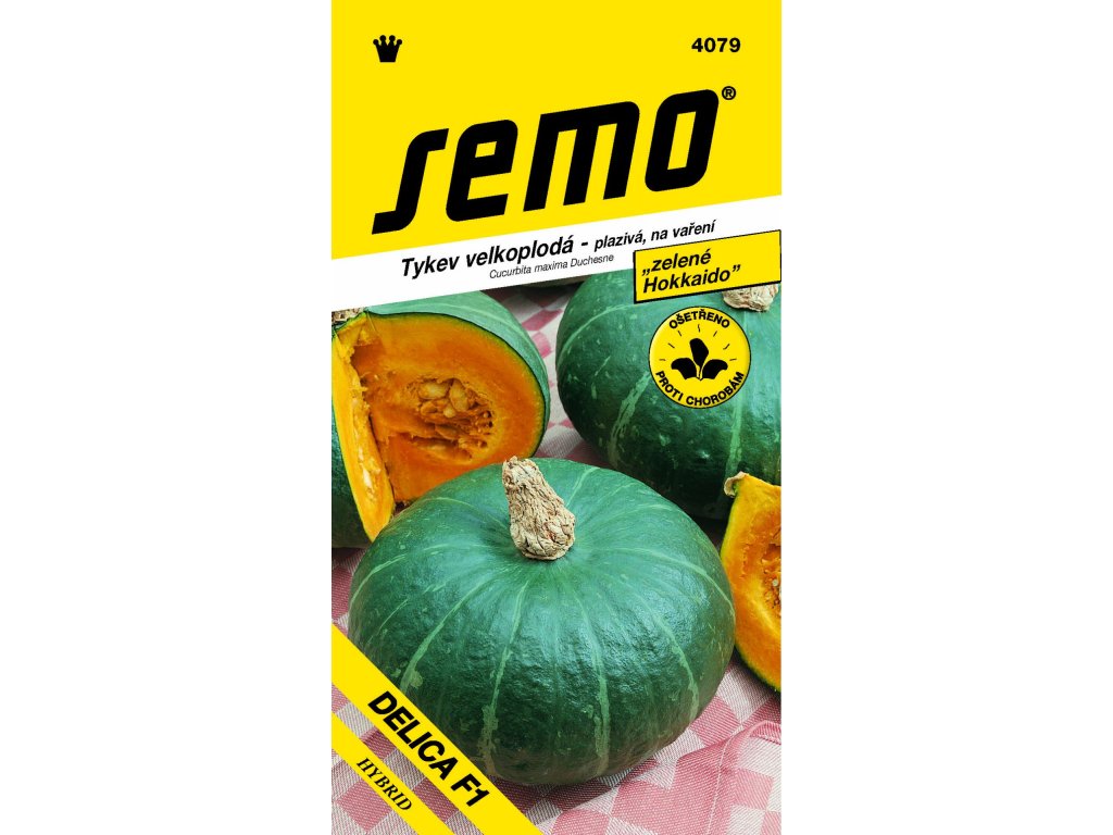 DELICA - chuť je to prvá niektorí tvrdia, že predbehnú aj klasické oranžové Hokkaido. Ploše guľovité tmavozelené plody so svetlým žíhaním dorastajú do hmotnosti okolo 2 kg. Dužina je jasne oranžová, chutná. Šupka je