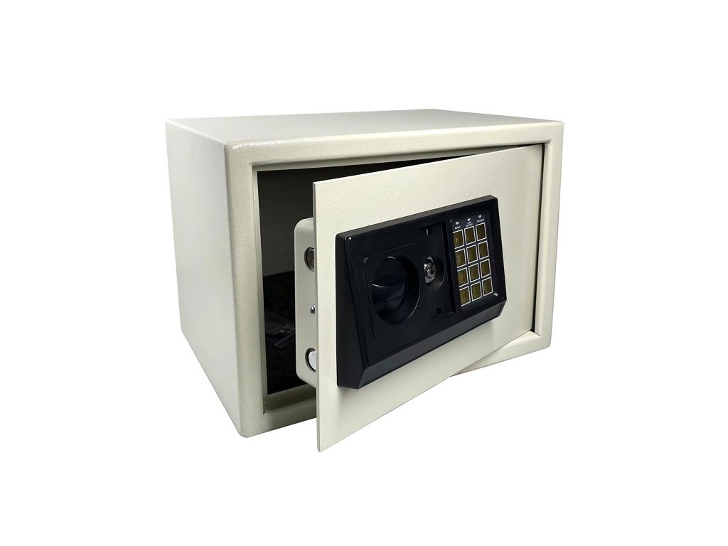 trezor s elektronickým zámkom na číselný kód rozmery: vonkajšie rozmery 350 x 250 x 250 mm, vnútorné rozmery 270 x 190 x 230 mm (š xvxh), hmotnosť 10 kg možnosti nastavenia kódu 3 - 8 číslic, bezpečnostný kľúč napájania 4 x AA batérie (tužková)Dodatočné parametre