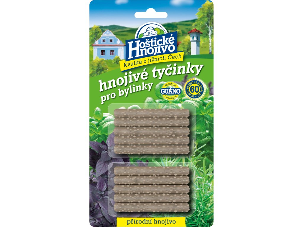 Hoštické tyčinky sú vhodné pre všetky druhy byliniek - zelené korenie, ako sú majoránka, pažítka, bazalka, mäta, ligurček, žerucha, satur a ďalšie druhy aromatických rastlín. Hnojivové tyčinky obsahujú navyše guáno, pochádzajúce z trusu morských vtákov, ktoré aktivuje pôdnu mikrofléru a dodáva rastlinám potrebné živiny. V zimnom období bylinky nehnojte.