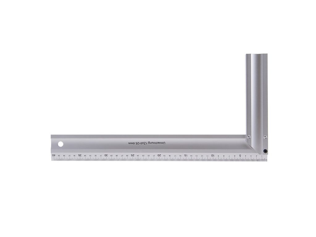 Hliníkový uholník, meracie rameno so stupnicou v mm, zosilnený profil, kvalitné spracovanie.