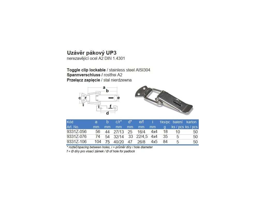 Uzáver pákový uzamykateľný UP3, nerez A2