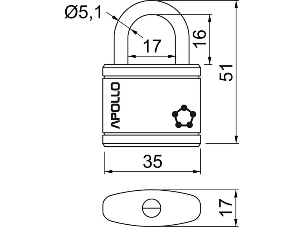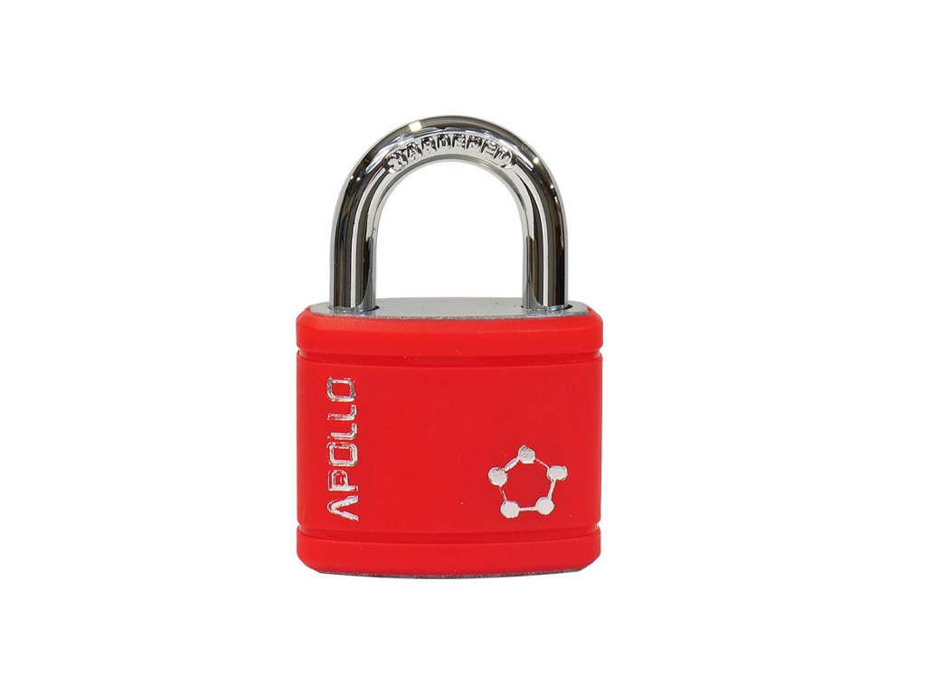 Zámok visiaci APOLLO 35 3 kl. ČRV. Oceľový visiaci zámok. Práškovo lakované teleso zámku s plastovým krytom. Strmeň zámku HARDENED, istený v dvoch bodoch. Zamykanie bez kľúča – zatlačením strmeňa. Vložka zámku s 5 odpruženými stavítkami. hmotnosť netto: 0,07 kg farba: červená Balenie vr. 3 ks kľúčov.Dodatočné parametre