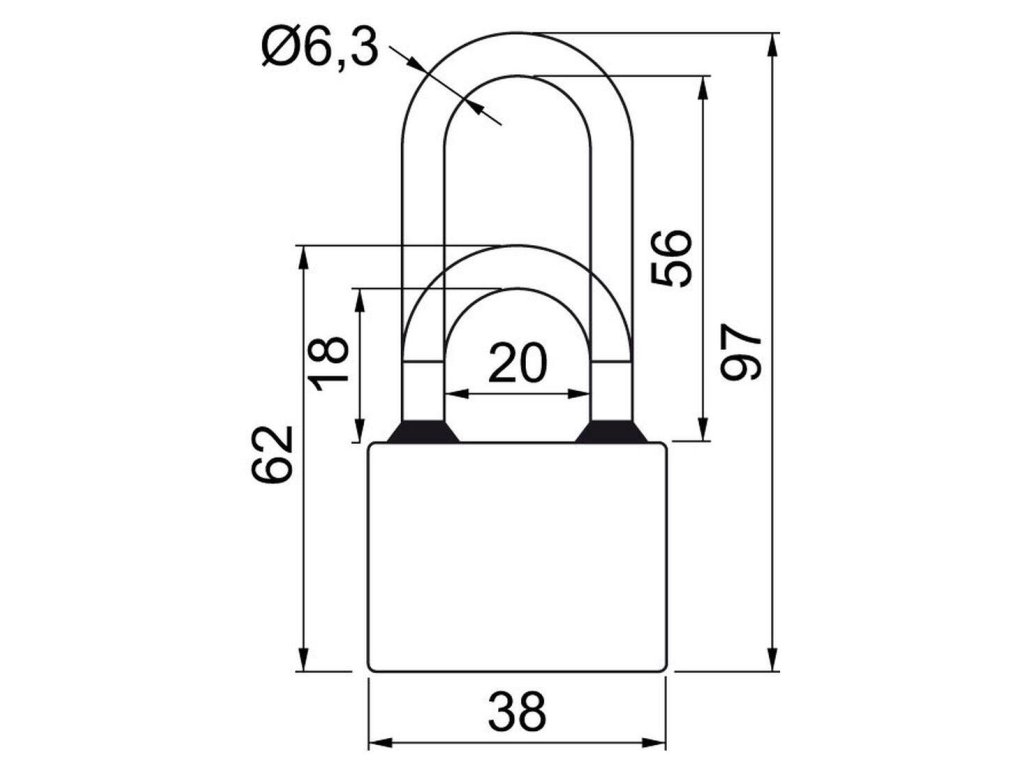 Klasický liatinový zámok. Štandardný alebo predĺžený (PL) strmeň HARDENED, istený v dvoch bodoch. Gumové krúžky chrániace liatinové teleso proti prieniku vody. Zamykanie bez kľúča – zatlačením strmeňa. Možnosť spoločného uzáveru - „SU“. Vložka zámku s 5timi odpruženými stavítkami. Povrchová úprava: modrý komaxit Hmotnosť netto: 0,13 kg, PL 0,15 kg Balenie vr. 3 ks kľúčov.Dodatočné parametre
