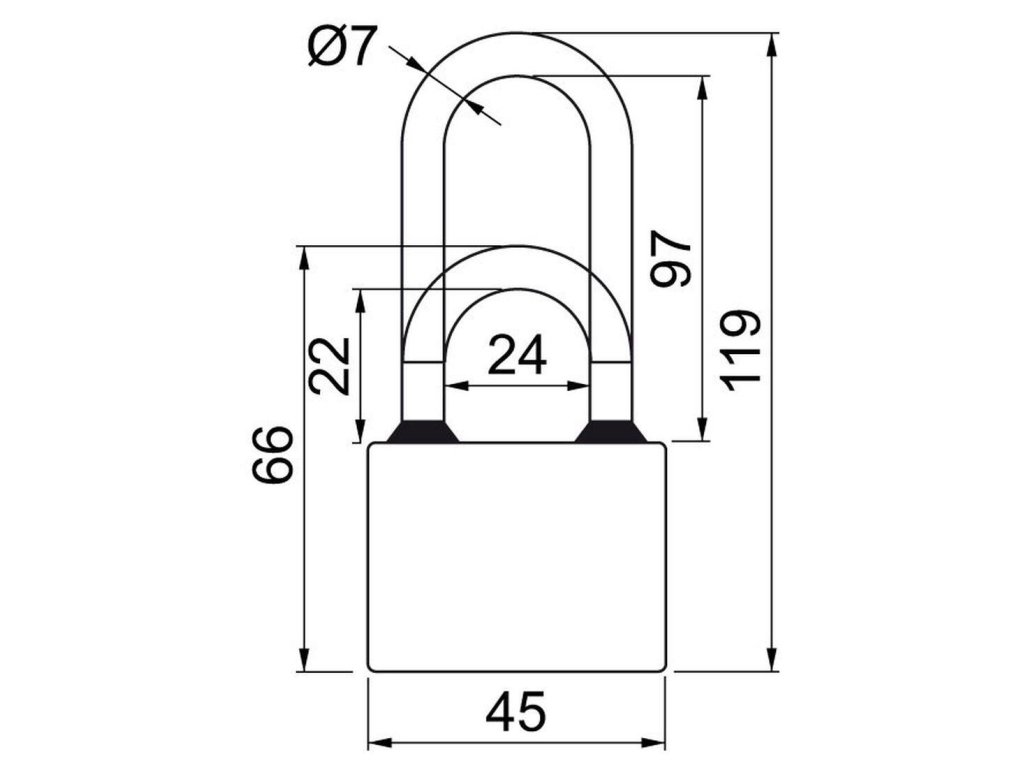 Klasický liatinový zámok. Štandardný alebo predĺžený (PL) strmeň HARDENED, istený v dvoch bodoch. Gumové krúžky chrániace liatinové teleso proti prieniku vody. Zamykanie bez kľúča – zatlačením strmeňa. Možnosť spoločného uzáveru - „SU“. Vložka zámku s 5timi odpruženými stavítkami. Povrchová úprava: modrý komaxit Hmotnosť netto: 0,13 kg, PL 0,15 kg Balenie vr. 3 ks kľúčov.Dodatočné parametre