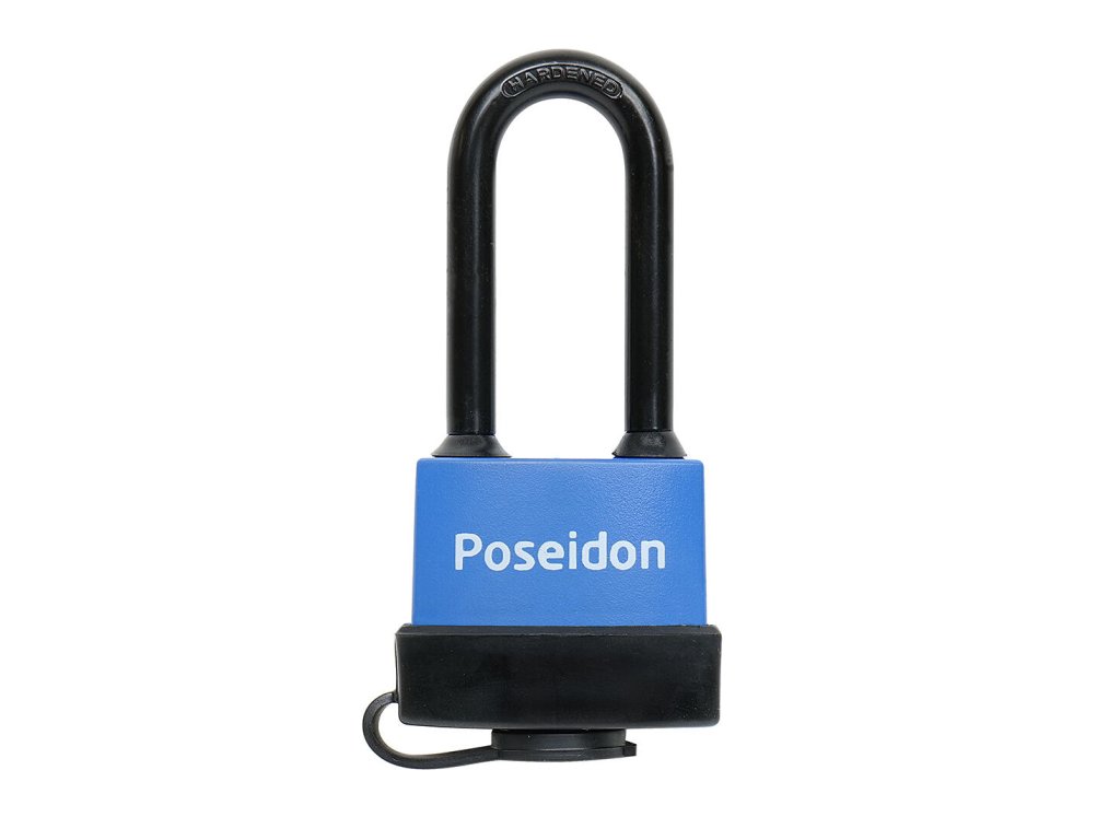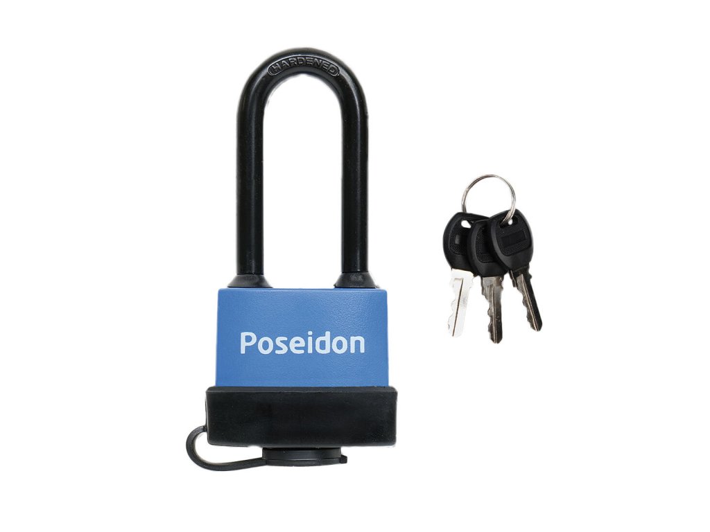 Zámok visiaci POSEIDON 40 predĺžený 3 kl. vodeodolný s PH prekrytom. Oceľový vodeodolný zámok s plastovým krytom. Predĺžený (PL) strmeň HARDENED istený v dvoch bodoch. Krytka vložky proti prieniku vody a nečistôt. Zamykanie bez kľúča - zatlačením strmeňa. Vložka zámku s 5 odpruženými stavítkami. hmotnosť netto: 0,19 kg Balenie vr. 3 ks kľúčov.Dodatočné parametre