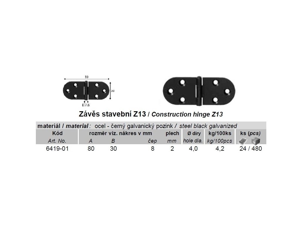 Záves stavebný Z13, čierny pozink