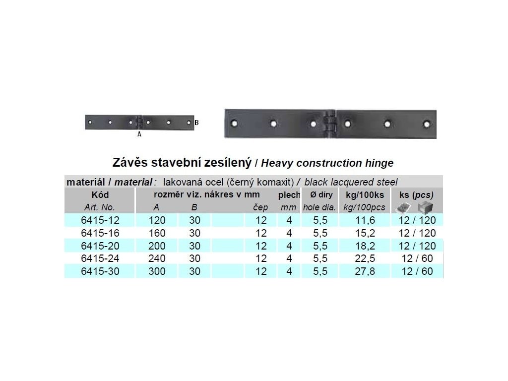 Záves stavebný zosilnený, čierny lak